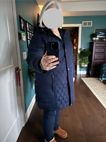 I was looking for a slightly longer coat that hit me about mid guy and wasn't overly bulky. This coat fits the bill. I love the color and the fit is great, actually very flattering. It seems warm but not overly bulky